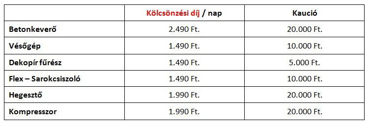 Gépeink kölcsönzésekor kauciót kérünk letétbe, amely természetesen a gép visszahozatalakor visszajár.